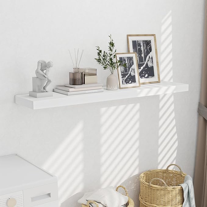 - VERSATILE WALL SHELVES: This 55 inches floating shelf is a versatile solution for any room in your home. Whether used in the living room, bedroom, office, or kitchen, it can be styled to suit various purposes, from displaying art to organizing everyday items. Perfect for enhancing any decor
