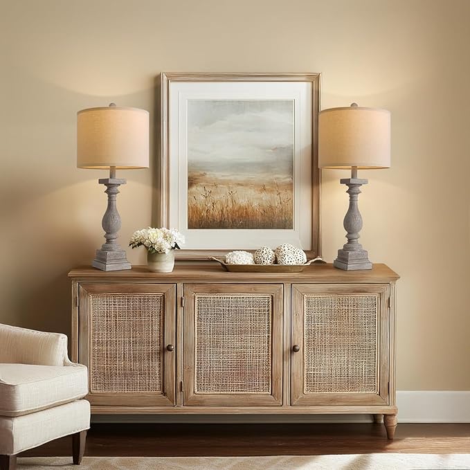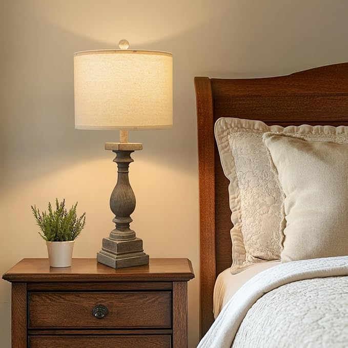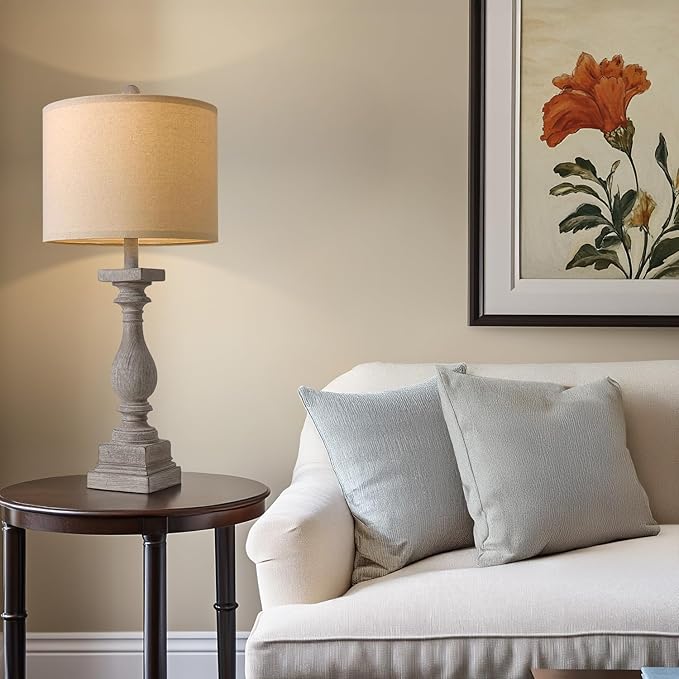 - 【Timeless Design & Versatile Use】BOBOMOMO 27" farmhouse table lamps in an antique gray hue add a touch of rustic elegance to your home decor. The durable resin material ensures they'll stand the test of time, and the linen lampshades offer cozy ambiance, perfect for living rooms, bedrooms, entryway, or offices.