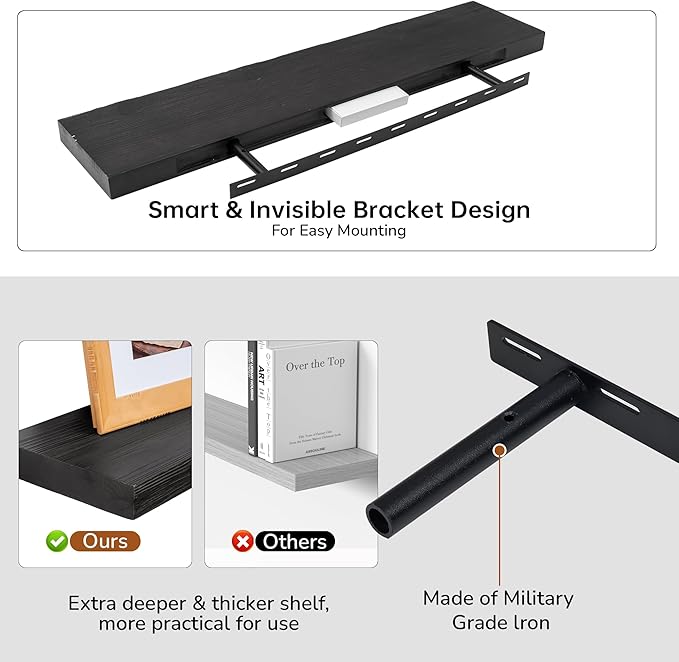 - Space-Saving Solution: Maximize storage without occupying floor space. Our floating wall shelves reduce clutter and enhance wall decor, perfect for compact spaces and any interior style.