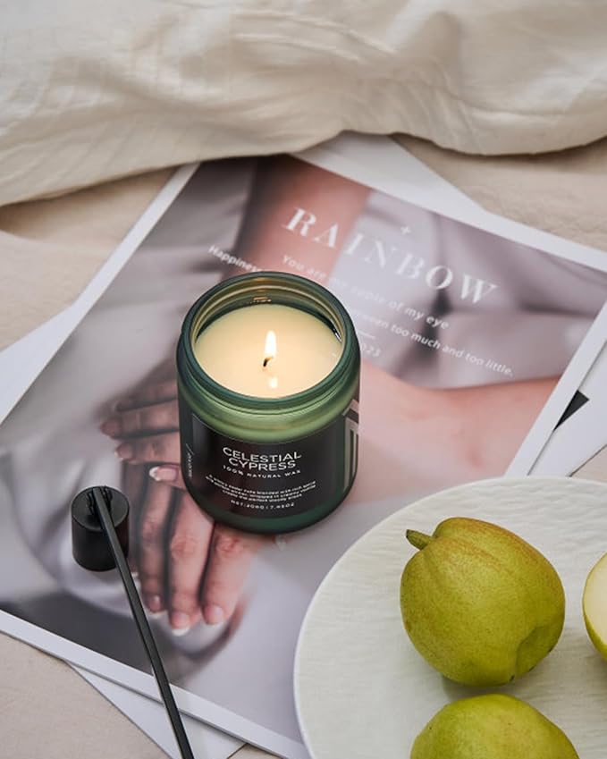 M&SENSE Celestial Cypress Scented Soy Jar Candles, Best Smelling Cedarwood Cardamom Scented Candles 7.05oz 50 Hour Long Lasting Burn, Non Toxic Natural Woody Scent Gifts for Men Women