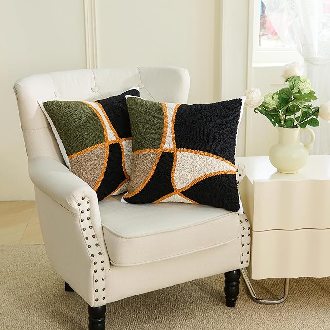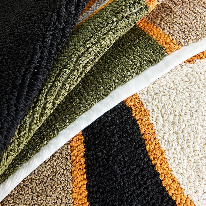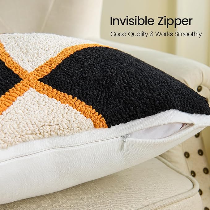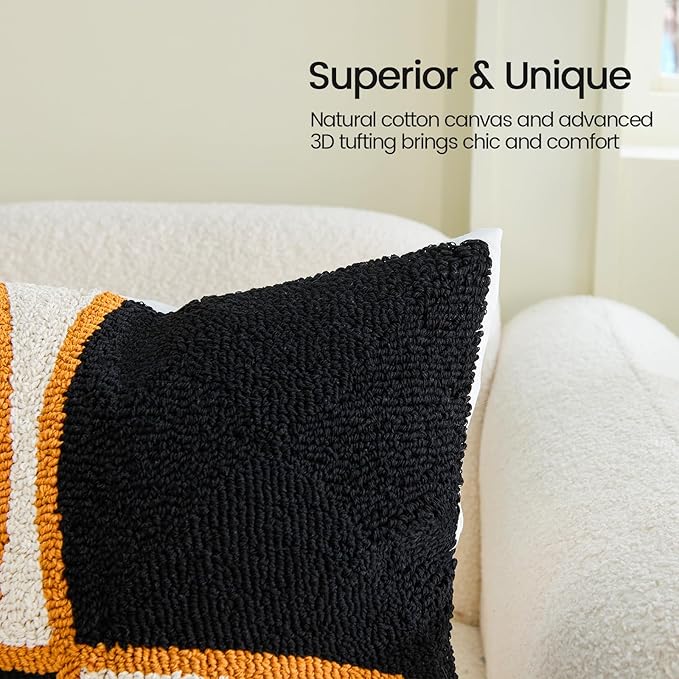 - ⭐【FABRIC AND SIZE】The front of this boho couch pillow cover is made of 100% polyester + 10% viscose,the backside is made of 100% cotton.Measures 18x18 inches.Exquisite workmanship enables tufting part dense soft and aesthetic.The 3D effect with the tufting technic makes these abstract pillow covers so distinctive