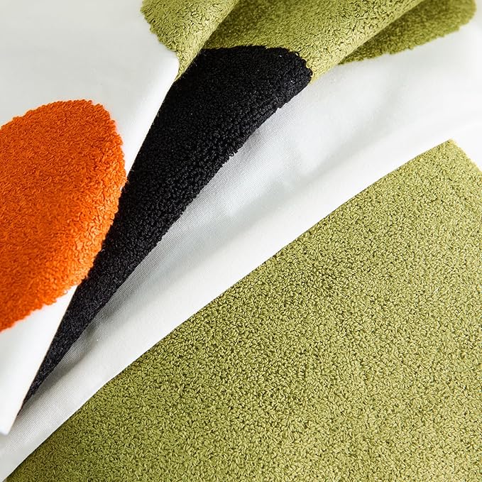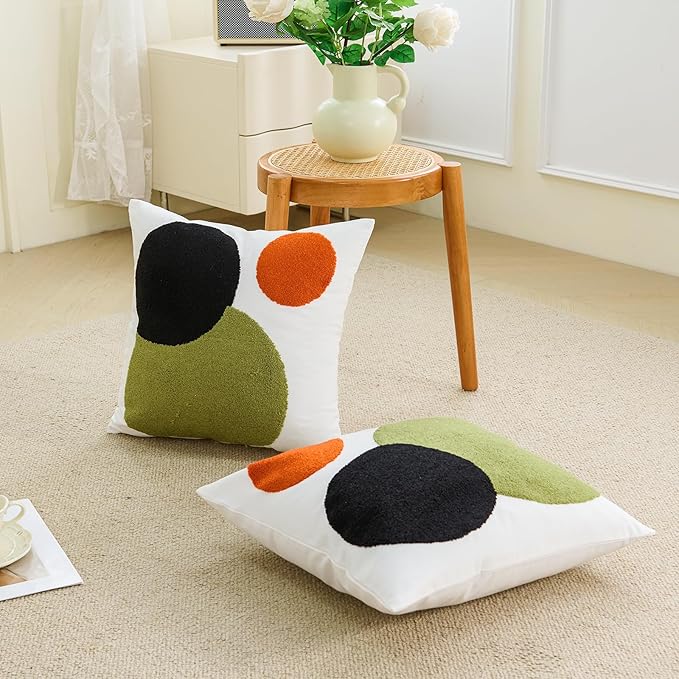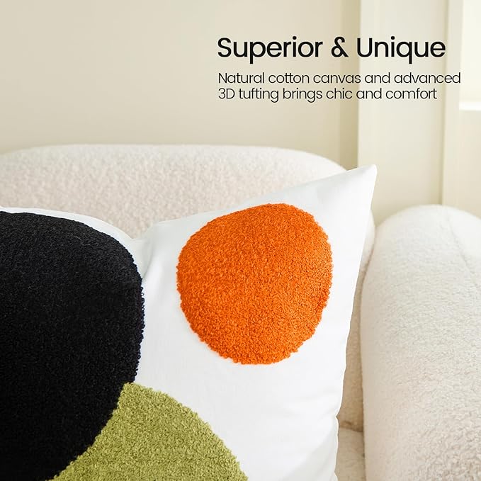 - ⭐【FABRIC AND SIZE】The front of this boho couch pillow cover is made of 100% polyester + 10% viscose,the backside is made of 100% cotton.Measures 18x18 inches.Exquisite workmanship enables tufting part dense soft and aesthetic.The 3D effect with the tufting technic makes these abstract pillow covers so distinctive