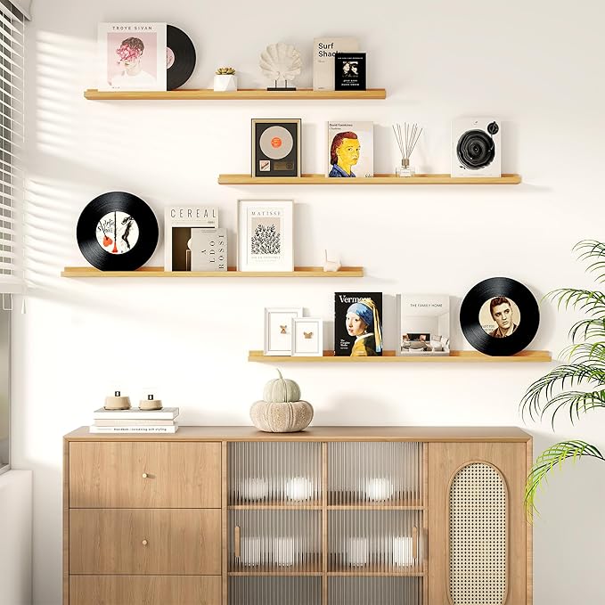 - NO ASSEMBLY REQUIRED: Fun Memories fully assembled long floating shelf set of 4 comes with the pre-drilled holes and necessary hardware including a mini level to make installation a breeze. The floating design creates a seamless, streamlined look, adding a touch of modern sophistication to your interior