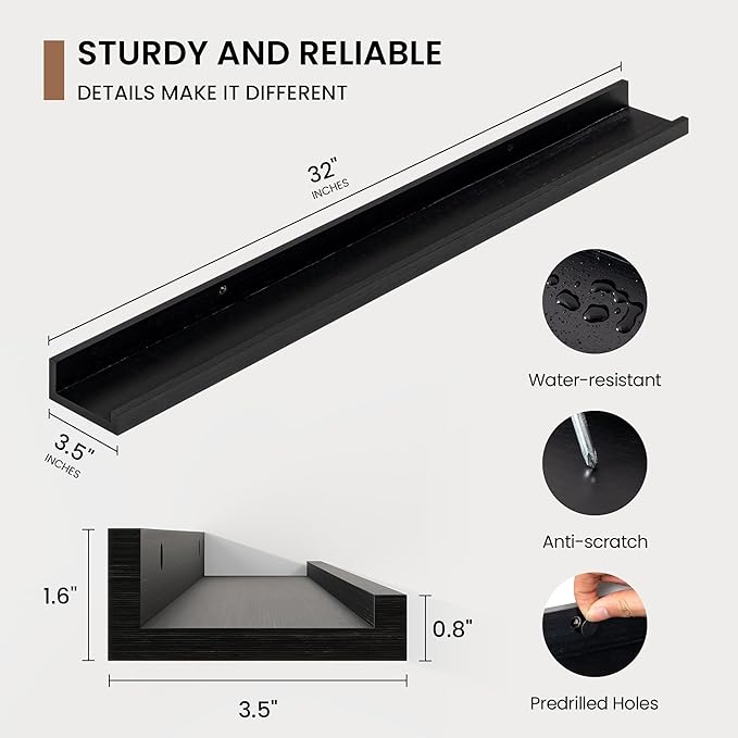- 3.5" Floating Picture Ledge: Anti-Slip Narrow Design-3.5" ultra-narrow depth holds frames/plants without sliding, even on angled walls. Stud-Mounted Stability-16" pre-drilled holes match standard studs (hardware incl.) for wobble-free install. Clutter-Free Aesthetic-Clean lines blend with farmhouse/Scandinavian decor, focusing on your treasures