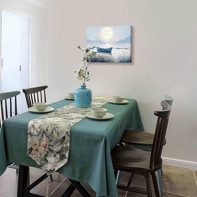 - Tranquil Wall Art for Every Space. Transform your walls with this stunning coastal canvas wall art featuring a peaceful moonlit lake, glowing moon, and a serene boat. Perfect for adding nature-inspired elegance to your bathroom, kitchen, bedroom, or office décor