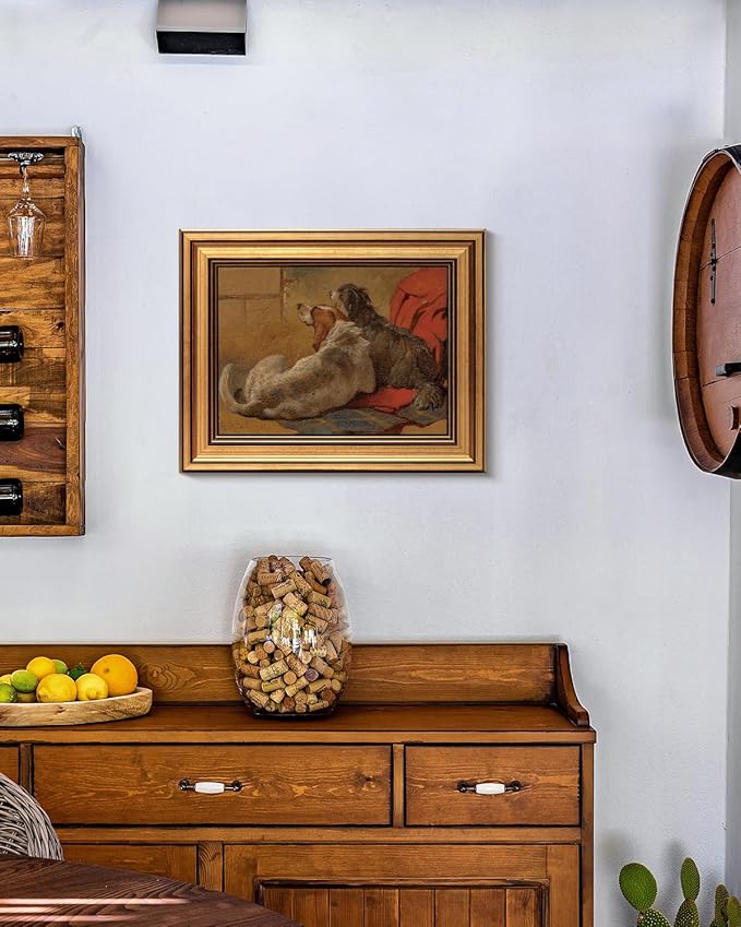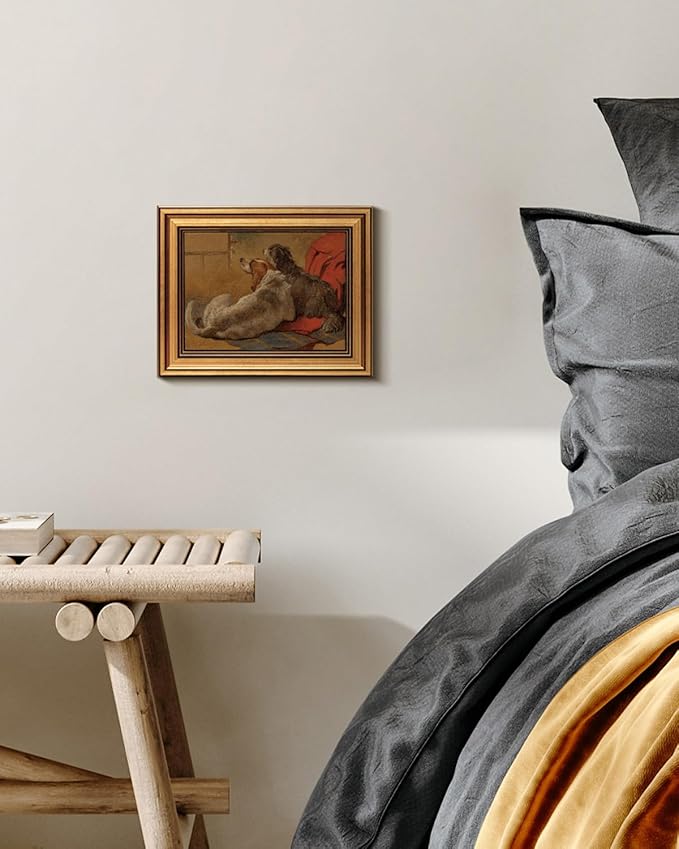 HUARCEY Gold Framed Vintage Wall Art for Living Room Dogs Oil Painting Wall Decor– Cozy Pet-Themed Aesthetic Room Decor for Bedroom Prints Study Classic Animal Artwork Gift for Dog Lovers 8"x10"