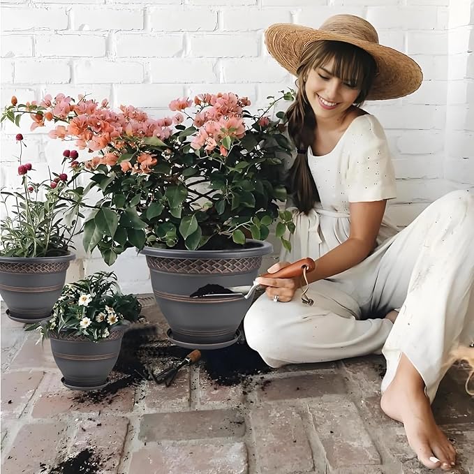 - Premium Quality Flower Pots - The plastic pots are made from premium PP plastic which are sturdy, lightweight, not color-fade and crack over time, great for your plants to grow.