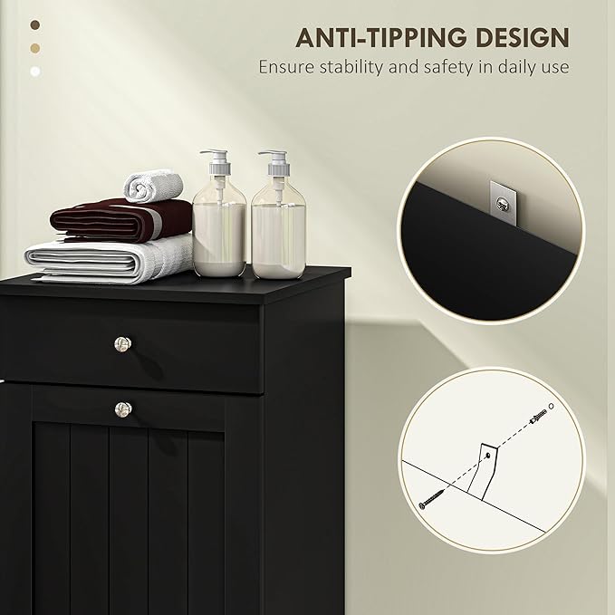 HOMCOM Laundry Hamper with Removable Basket, Tilt Out Hamper with Drawer and Beadboard Door, Bathroom Storage Cabinet, Black