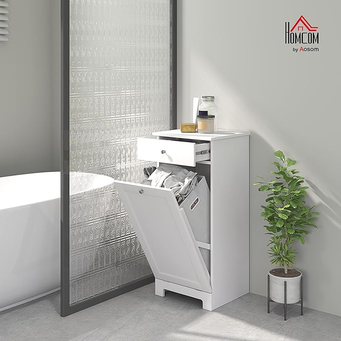 HOMCOM Laundry Hamper with Removable Basket, Tilt Out Hamper with Drawer and Beadboard Door, Bathroom Storage Cabinet, White