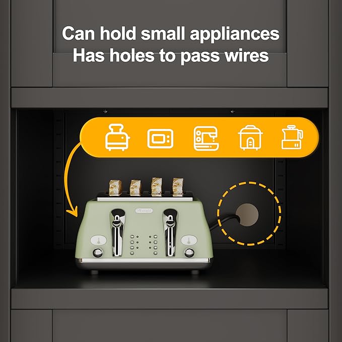 - 🛒【High Quality Materials】: The Kitchen storage cabinet is made of high-quality cold-rolled steel. Pantry cabinet adopts a high-quality electrostatic powder layer, which is easy to clean, scratch resistant, and sturdy and durable.