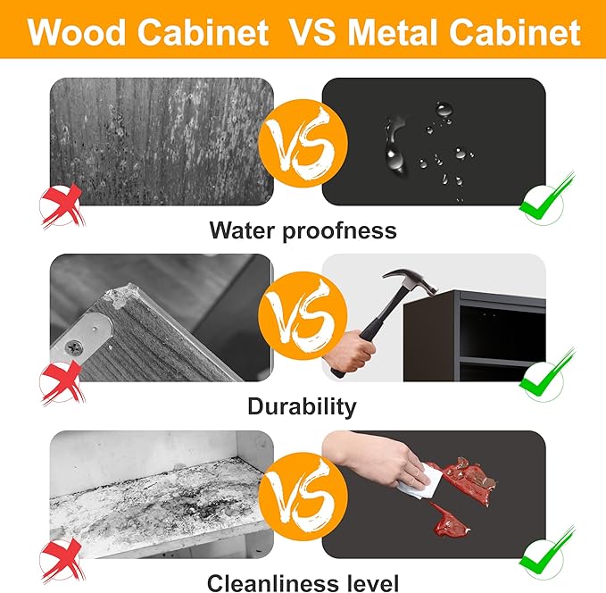 - 🛒【Design to Prevent Tipping】: The metal cabinet has an anti tipping configuration and can be fixed on the wall to prevent the cabinet from tipping over during use.