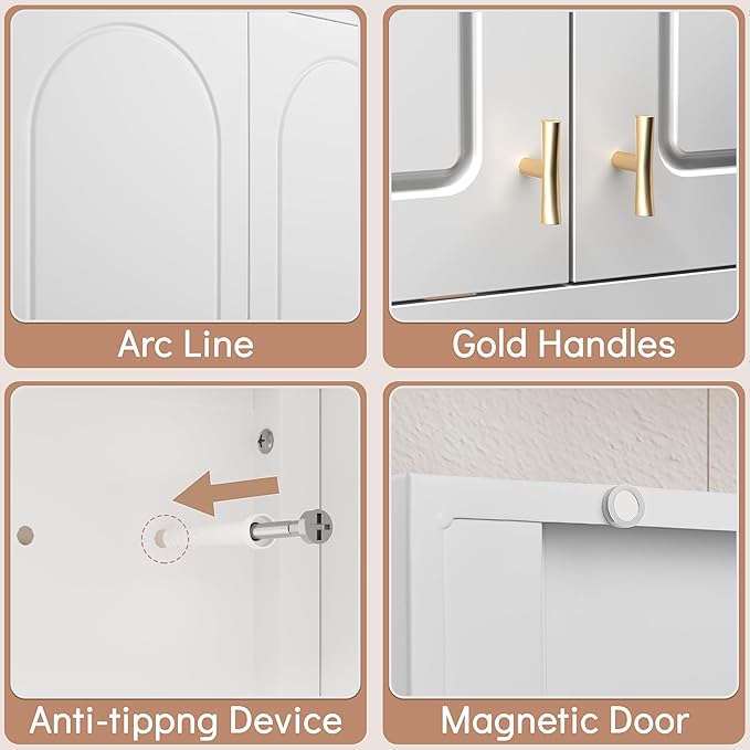 - STYLISH APPEARANCE: Simple white lines make the white storage cabinet more elegant and beautiful, and complement various decorative styles. Whether your home is modern or vintage, this white cabinet will fit together seamlessly