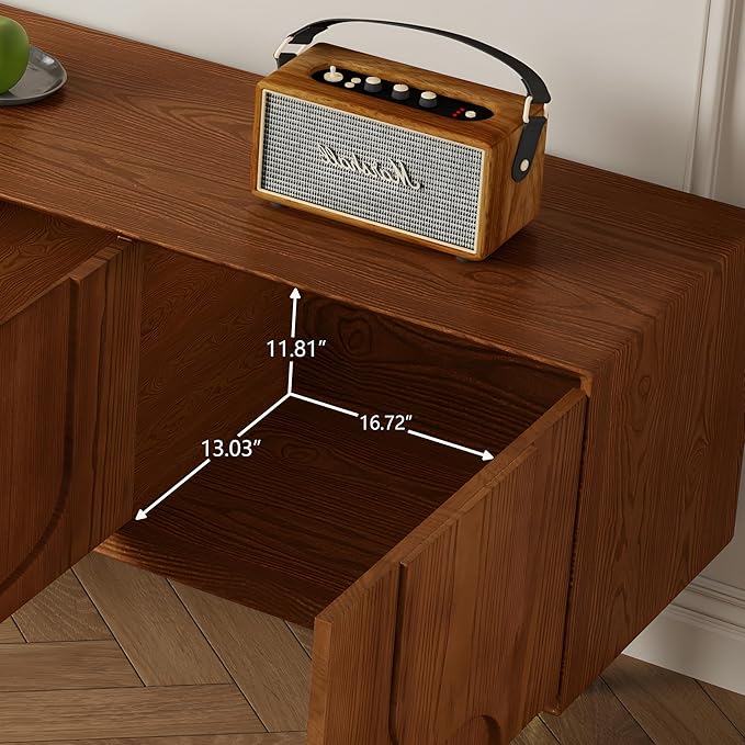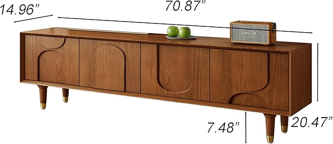 - MEDIEVAL RETRO STYLE: The medieval retro style of our TV cabinet is truly captivating. The walnut hue not only reflects the retro aesthetic but also adds a touch of warmth and sophistication, making it a perfect focal point that can enhance the overall ambiance of your entertainment area. The delicate curved three-dimensional carvings are intricately detailed and uniquely charming