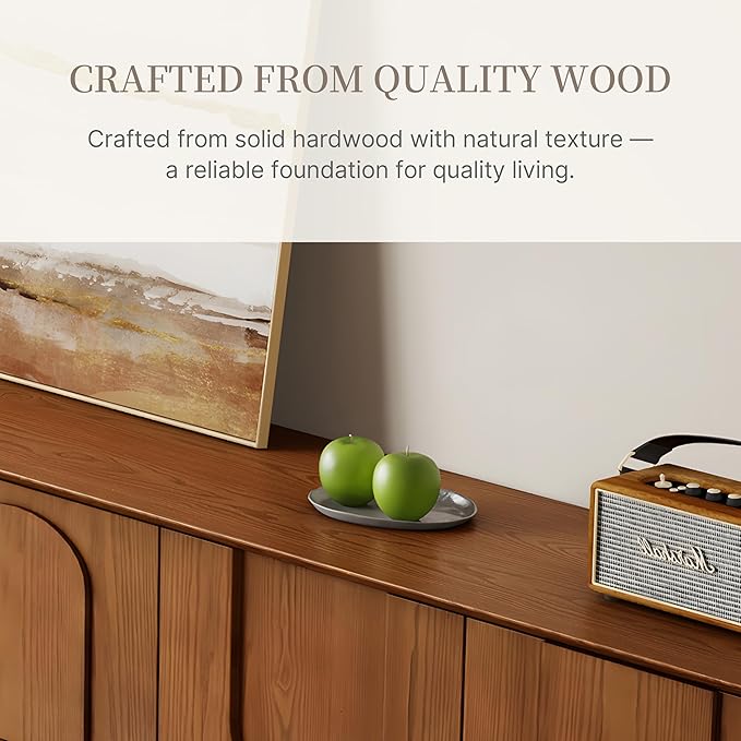 - PREMIUM MATERIAL: The TV entertainment stand is meticulously crafted from premium mdf and veneered with walnut. This material provides a solid and sturdy foundation, ensuring that the cabinet can withstand the test of time. Paired with the walnut veneer that showcases natural wood grain, it creates a warm and inviting atmosphere