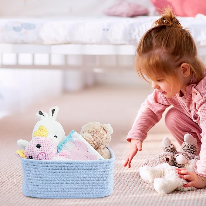 Small Woven Storage Baskets 13“X9”X5“ Decorative Rope Bins for Organizing Shelves, Closets, and Toys, Empty Gift Baskets, Cute Organizer Basket for Home and Office (blue, Large)