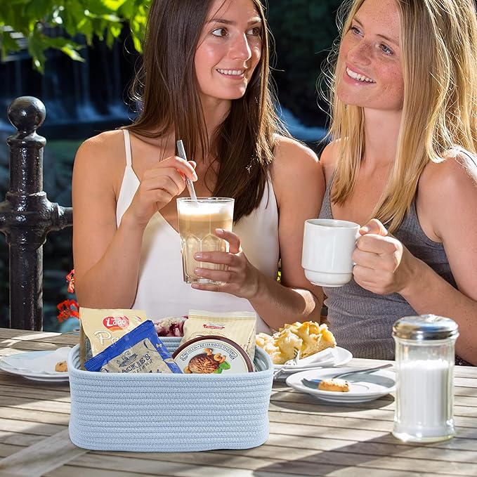 Small Woven Storage Baskets 12“X8”X5“ Decorative Rope Bins for Organizing Shelves, Closets, and Toys, Empty Gift Baskets, Cute Organizer Basket for Home and Office (blue, regular)