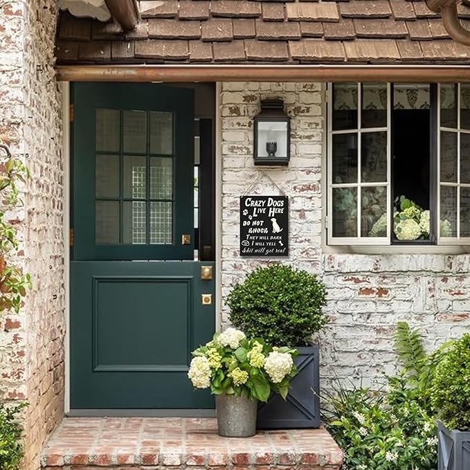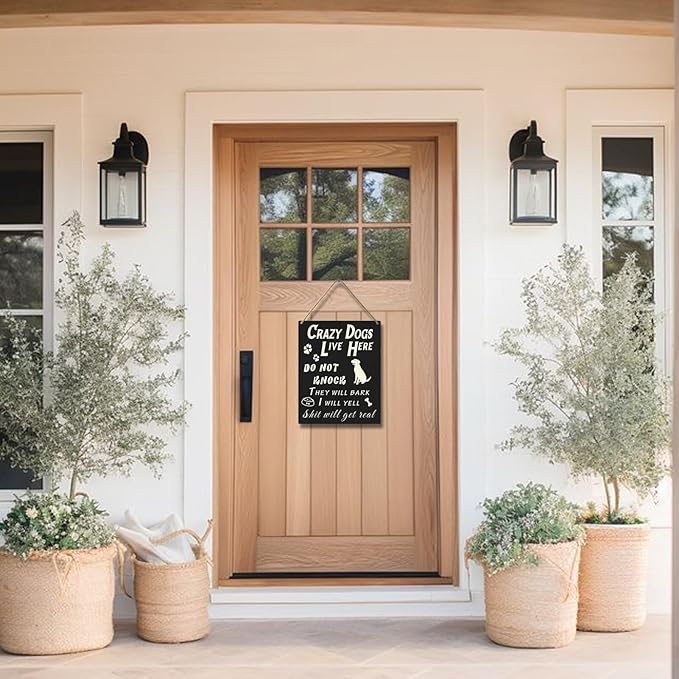 - Effortless Installation: Crazy dogs live here do not knock sign includes a rustic hemp cord hanger for quick mounting. No tools needed. Hang it anywhere indoors or outdoors in seconds!