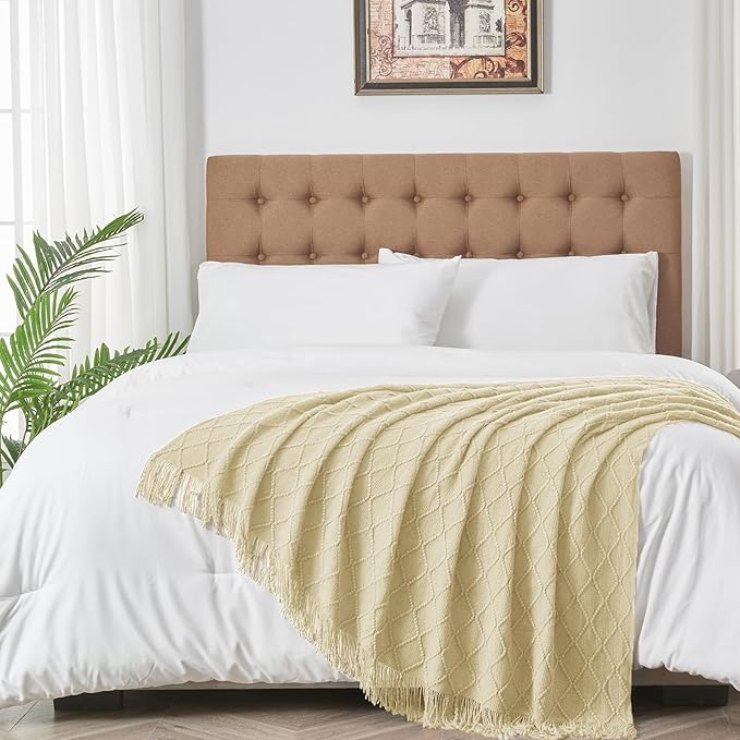 inhand Knitted Throw Blanket for Couch and Bed, Soft Living Room Home Decor Knitted Blanket with Tassel, Outdoor Lightweight Breathable Summer Blanket, Farmhouse Warm Woven Decorative, 50"x60"