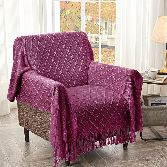 - 【GIFT IDEAS】: Special knitted diamond patterns add a unique accent to your room and people draping it as a shawl. Very suitable for tasteful homeowners. Throw blanket for women, classic but not too tacky as a housewarming gift. Tips: Due to different lighting, display settings, or resolutions, the difference in color happens. We are dying to show the color. To do so, one of the images shows the color difference in different lighting. Hope these instructions would help you to buy a throw.