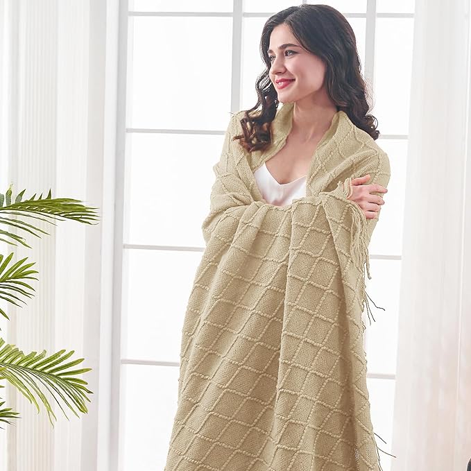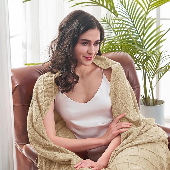 - 【GIFT IDEAS】: Special knitted diamond patterns add a unique accent to your room and people draping it as a shawl. Very suitable for tasteful homeowners. Throw blanket for women, classic but not too tacky as a housewarming gift. Tips: Due to different lighting, display settings, or resolutions, the difference in color happens. We are dying to show the color. To do so, one of the images shows the color difference in different lighting. Hope these instructions would help you to buy a throw.