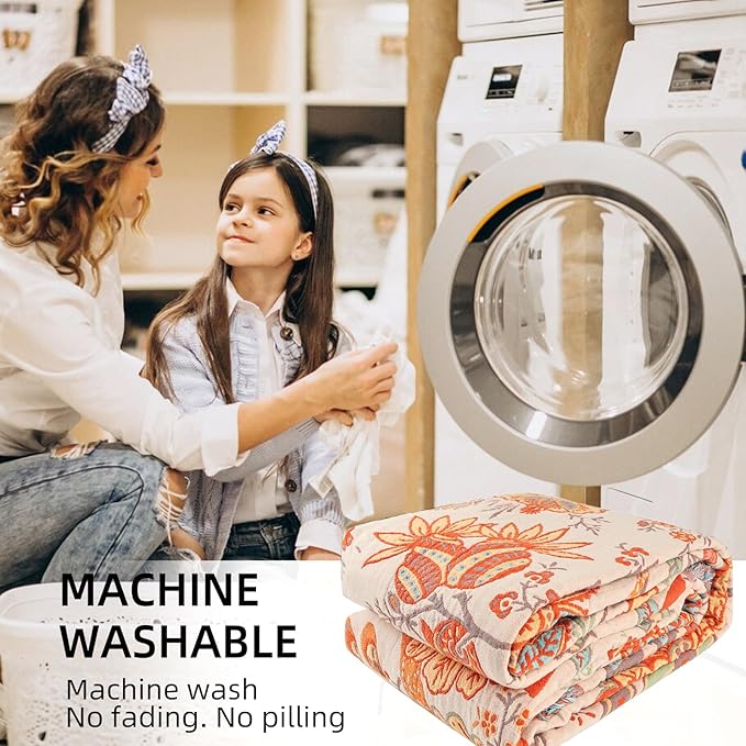 Boho Throw Blanket for Bed - 100% Pure Cotton Ultra Soft Rustic Quilt - Farmhouse Decor Bed Blankets, All Season Rustic Throw for Sofa Couch Chair(91''x 98'', Floral)
