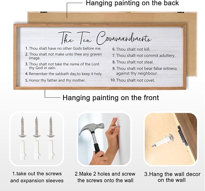- 【Encouraging Words】 The Ten Commandments large hanging wood sign adopt minimalist letters on the white background, showing constant reminder of faith and devotion in any setting and you passion for god, adding a touch of elegant, and classic beauty to your space and giving people a calming feeling.