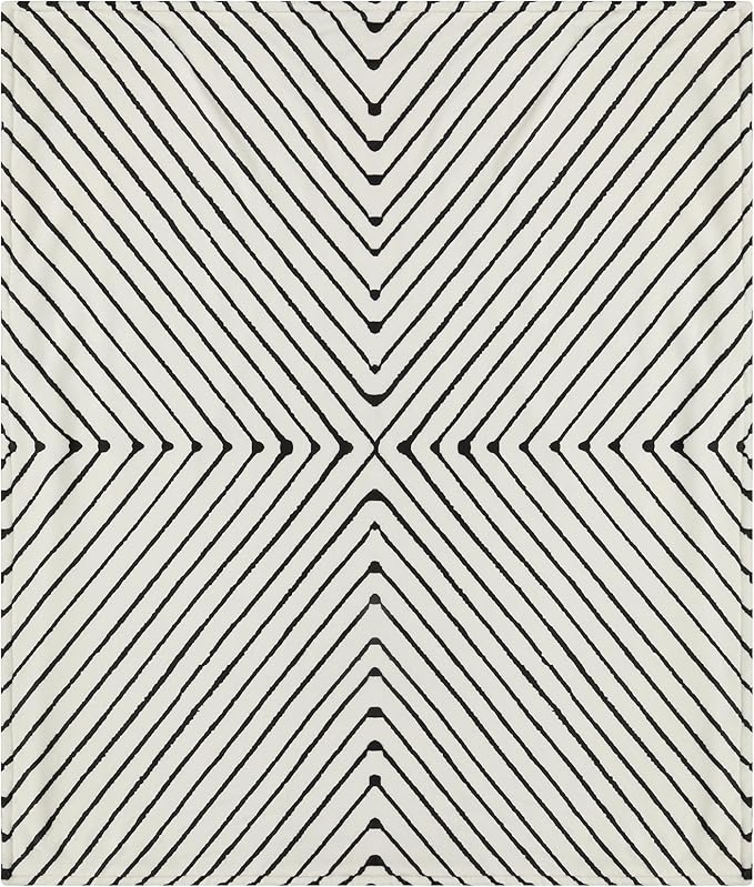Lahome Boho Fleece Throw Blanket Black White Striped Fluffy Bed Throws Soft Cozy Warm Fuzzy Throw Blanket Reversible Blankets for Couch Sofa, Off White 50''x60''