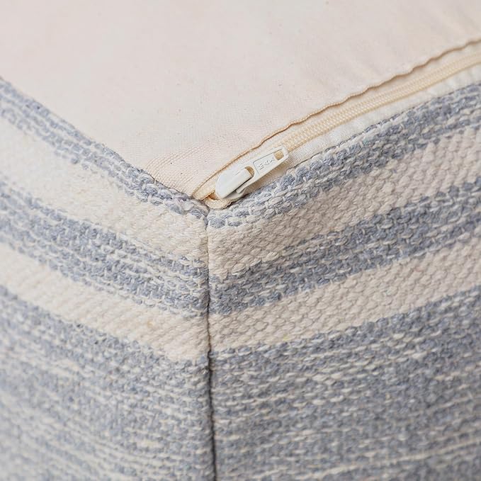 - BEAUTIFULLY DESIGNED AND HANDCRAFTED: The 100% cotton indoor patio Poof comes in a variety of textured patterns that is made on handlooms by skilled artisans offering an excellent choice for foot stool and a convenient way to add comfort and style to your space. Choose your indoor hassock from wide options available that are handcrafted by mix and match of weaves, tassels and prints. It compliments modern, contemporary, boho or farmhouse decor.
