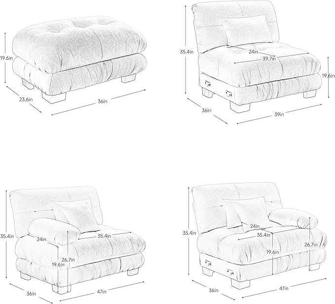 - Flexible Combination: You can freely combine your sofa according to your needs, we have a variety of combinations of choice, single, double, three, four, and a variety of combinations, you can also use it as an armless sofa. The flexible split structure is disassembled into 2 or 3 parts of the sofas, which are flexible and convenient to enter the house. Also, the back is simple and clean, it can be placed from multiple angles, not limited by the size of the house