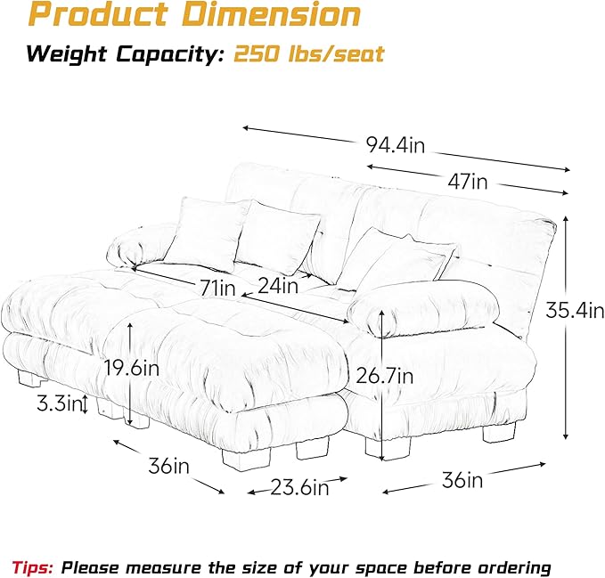 - Product Dimensions : 36"D x 94.4"W x 35.4"H