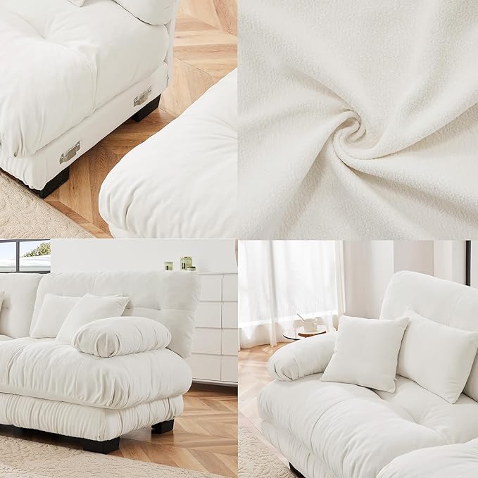 - Sitting on a Cloud: Cloud-look seat cushions without spring or wood inside offer excellent support and elasticity for your body. The deep seat offers extra support and waist comfort. Throw pillows and waist pillows provide you with extra support. You can sit down and feel the dorm couch backrest fit and support, enjoying unparalleled comfort. Whether you're watching TV, reading books, or chatting with family, this sofa will provide you with the ultimate comfortable experience