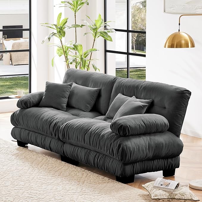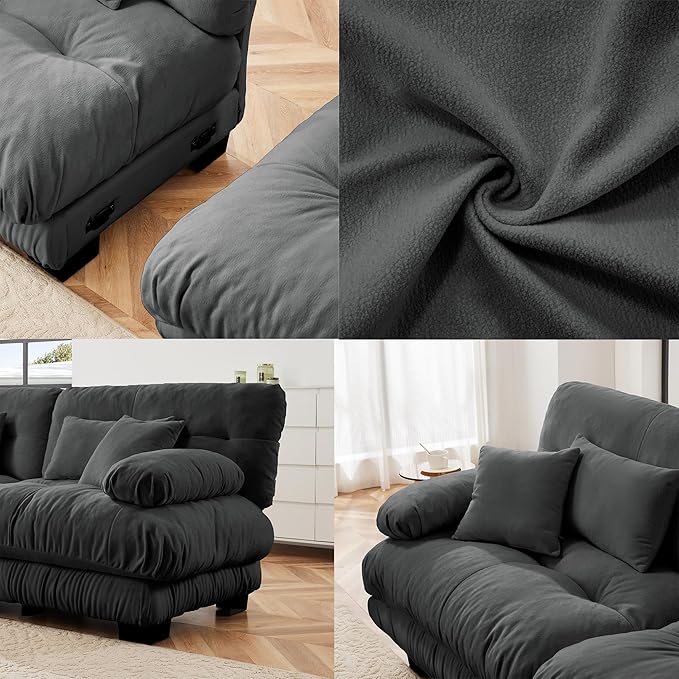 - Sitting on a Cloud: Cloud-look seat cushions without spring or wood inside offer excellent support and elasticity for your body. The deep seat offers extra support and waist comfort. Throw pillows and waist pillows provide you with extra support. You can sit down and feel the dorm couch backrest fit and support, enjoying unparalleled comfort. Whether you're watching TV, reading books, or chatting with family, this sofa will provide you with the ultimate comfortable experience