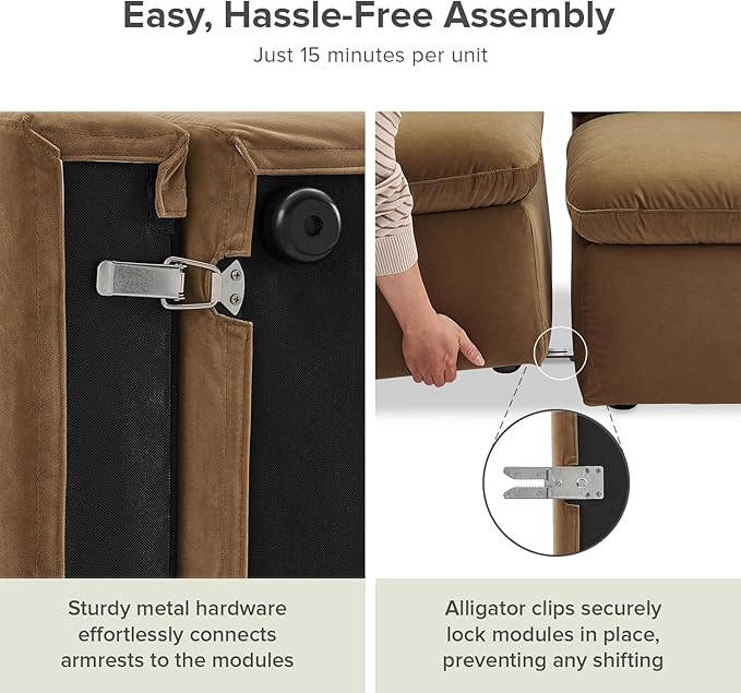 - Durable Build & Quick Assembly: FSC-Certified wood frame. Built to last, each seat supports up to 300 lbs, offering long-term durability without sacrificing comfort. Setup is easy, with a quick 15-minute assembly per unit, that locks everything securely in place, so you can enjoy your new couch without delay