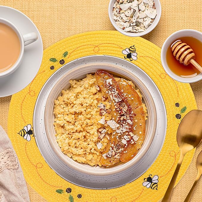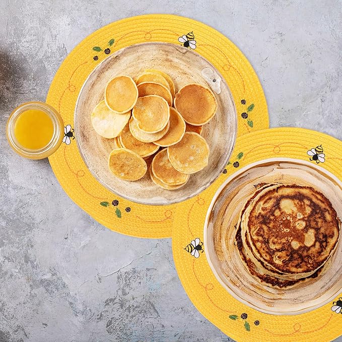 Whaline 4Pcs Round Placemats Bee Sunflower Embroidered Place Mats Bee Floral Dinner Table Mats for Home Spring Summer Holiday Birthday Baby Shower Party Decor
