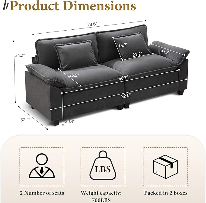 - Easy to Assemble: Comes with clear instructions and tools,this sectional couch can be easily assembled in 30 minutes.Couch Dimensions: 86''(W)*57''(D)*34.6''(H). Weight Capacity: 300 lbs. each seat, It can hold 2-3 people to sit on, and you can also feel free to take a nap on the sofa