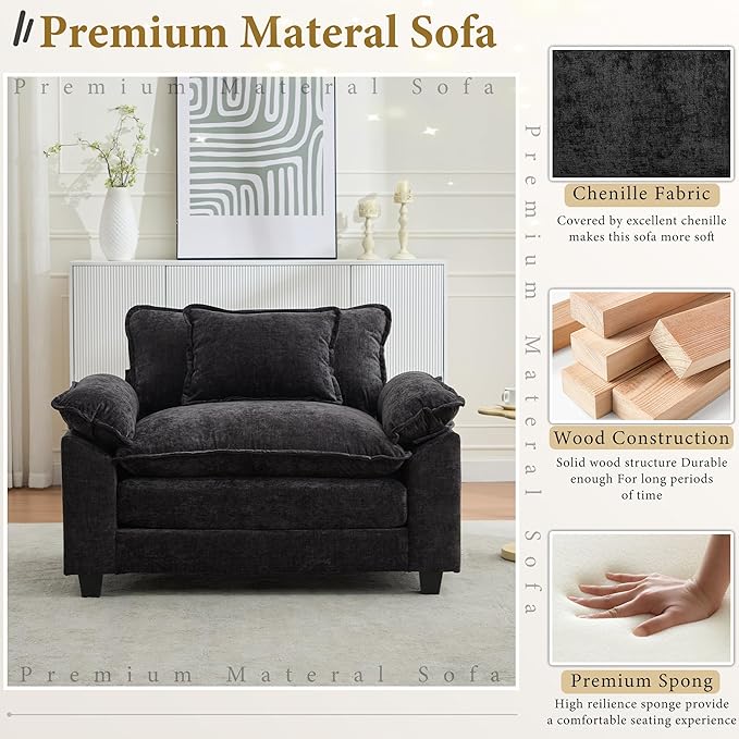URRED Modular Sectional Sofa Comfy Cloud Couch, Modern Chenille Sofa Sleeper Deep Seat Couches with Ottoman/Pillows for Living Room (Black, 53'')