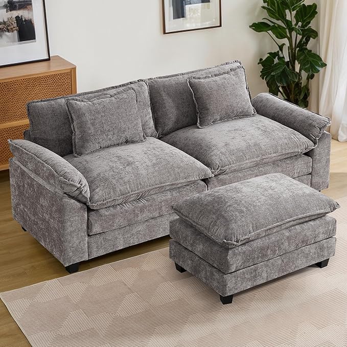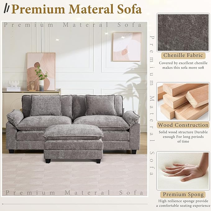 URRED Modular Sectional Sofa Comfy Cloud Couch, Modern Chenille Sofa Sleeper Deep Seat Couches with Ottoman/Pillows for Living Room (Gray, 82.6''- L Shape)