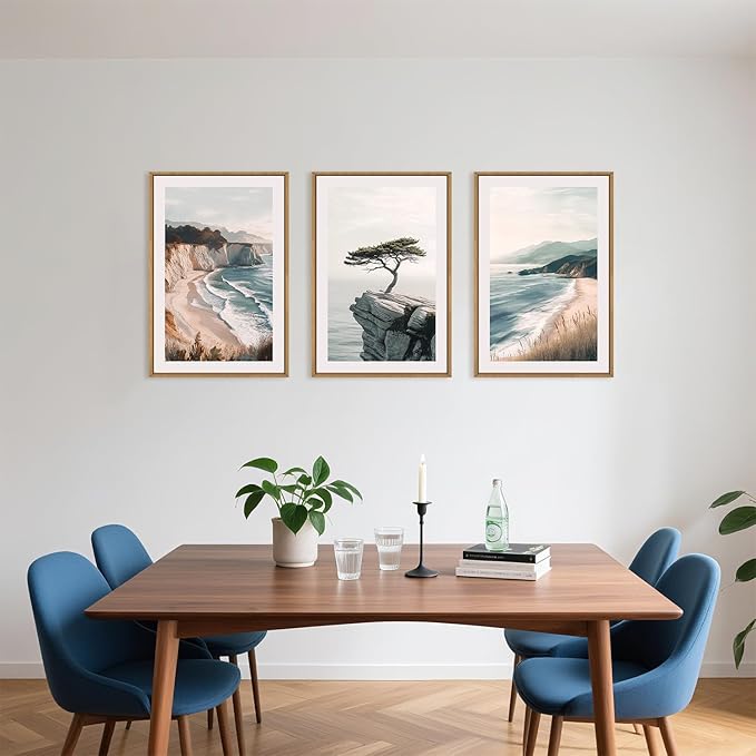 - 【Ocean Beach Wall Art Set】This ocean beach framed canvas wall art set executed in a charming nature style, captures ocean and trees, evoking an poetic atmosphere. Its modern organic farmhouse aesthetic is reminiscent of countryside charm. Utilizing this artwork as part of your decor will make your room full of poetry.