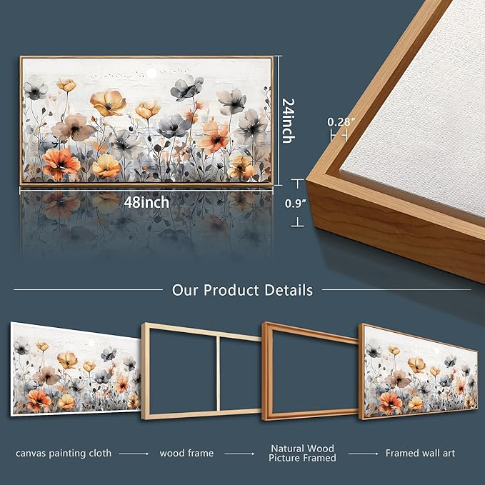 - Framed Wall Art Size: 24x48 inches (60x120 cm) Flowers,Makes a great focal point for a living room, bedroom, office, or any space that needs natural beauty