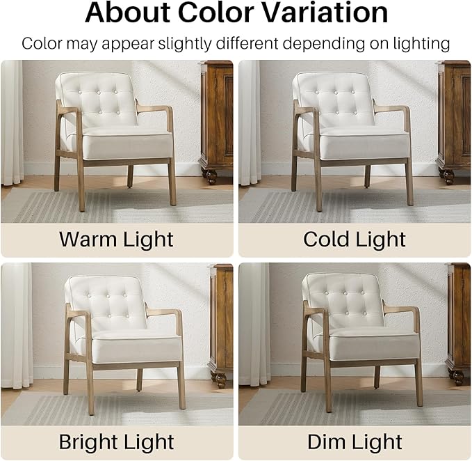 - VERSATILE USE: This button-tufted mid-century modern chair is suitable for various settings, such as living room, bedroom, study room, and balcony, office. The living room accent chair is a statement piece that brings comfort and style to any room