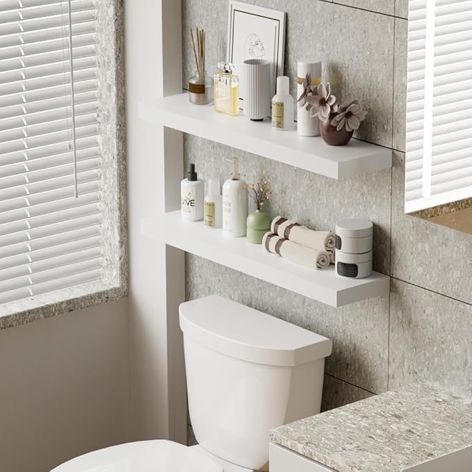 Habudda Floating Shelves for Wall, Display Shelf for Bathroom Bedroom Kitchen, Rustic Decor Pine Solid Wood Bookshelf, 30 Inch Long, Set of 2, White