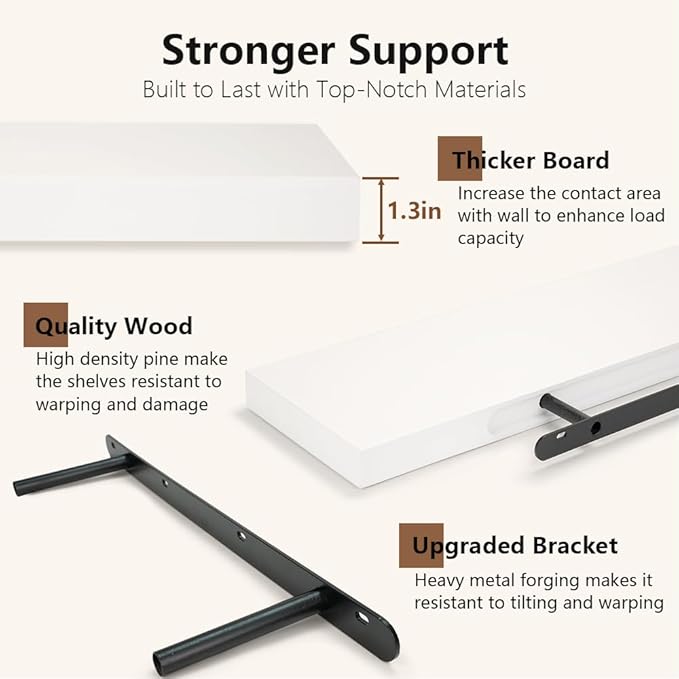 - Heavy-duty Support: Thicken to 1.3 inch, strengthen the contact surface with the wall to enhance stability. With high-quality upgraded hardware, it provides exceptional support