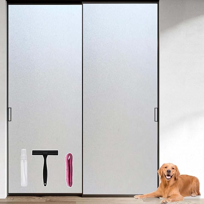 - [Window film privacy day and night]; Frosted window privacy film is used for glass windows, which can block prying eyes and dog barking, can effectively block unwanted sight from the outside, ensure that your private space is well protected, while still allowing soft natural light to enter, vinyl window film simple decoration makes life easier and better, glass doors, bathrooms, bathroom windows, home, kitchen, french doors, front door side windows, living room, meeting room, office, living room, house, patio door, bedroom, etc., window privacy screen, sliding door, Create a more comfortable living space for you and your family.