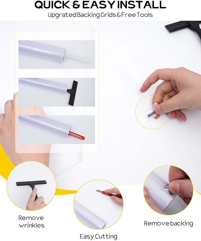 - [Installation Tips]: Please make sure that the surface, edges and corners of the window are clean enough without any dust, and remember to remove the transparent back film before installation; During installation, spray plenty of water on the surface of the window and on the back of the window privacy film to ensure effective adhesion! Note: Not for use with frosted, cut or machined glass that does not have a smooth surface