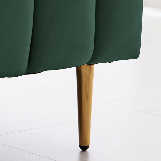 Livinia Twin Size Elton Velvet Platform Bed, Upholstered Bed Frame with Vertical Channel Tufted Headboard Footboard, Strong Wood Slats, No Box Spring Needed, Green (Twin)