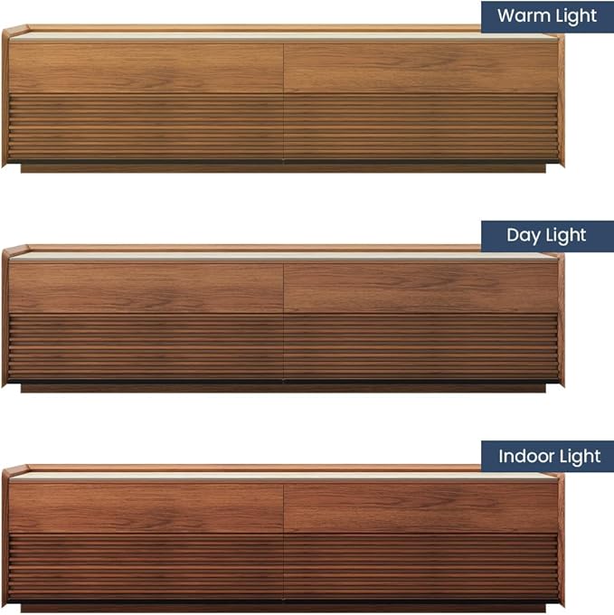 - Integrated LED Lighting: Enjoy the convenience of built-in LED lighting. The warm, 6-level adjustable lighting with remote control enhances the visual appeal of your TV console and makes your displayed items stand out