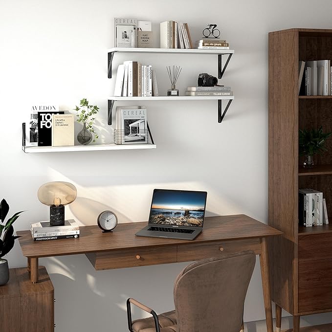 Heimlove Floating Shelves for Wall, 24 Inch Long Wood Floating Shelves Set of 3, Wall Mounted Hanging Shelf for Bathroom Bedroom Kitchen, White