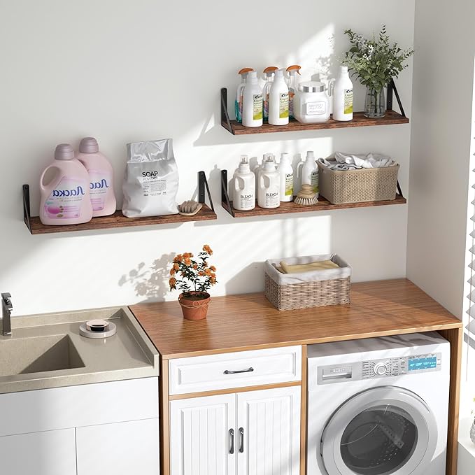 - 【ELEGANT STYLING DESIGN】High quality rustic floating wood shelves reflects a vintage elegance that meets both your decorative and organizational needs. It complements the warm home style design and shows off a distinctive taste