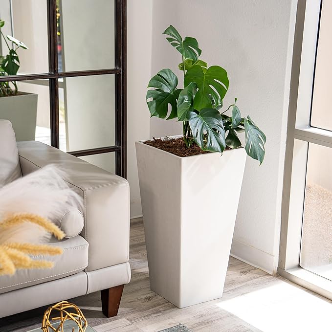- PERFECT FOR INDOOR AND OUTDOOR USE: Crafted with high-quality plastic material, these tall tapered planters are sturdy and weather-resistant, providing long-lasting durability for your plants in various conditions. Elevate your modern garden décor with these indoor and outdoor planters, enhancing your patio space or home entrance. They will fit perfectly in any corner of your home.