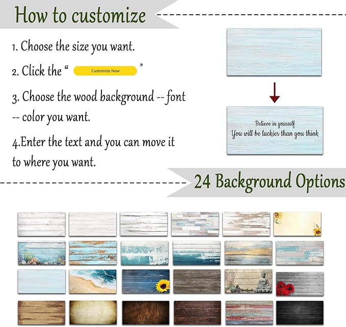 - Custom Sign Pictures for Wall -- Click "Customize Now" to select your desired wood background, font and font color, enter your desired text. The font and color can be selected as you like. We will create a customized sign for you based on your customized preview image.